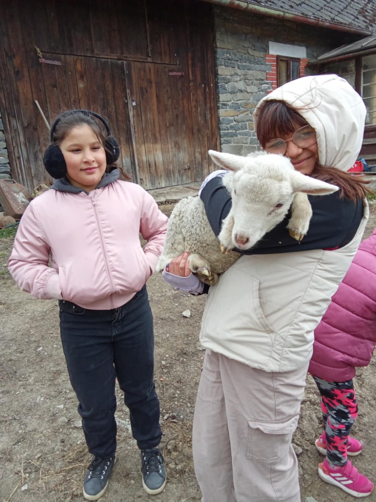 Dnes jsme se vydali autobusem do Karlovic na farmu plnou domácích mazlíčků a hospodářských zvířat. Helenka jich tam má 250. Některé děti poprvé hladily a krmily krávu, kozu, lamu nebo si pohladily jehňátko. Opravdu nezapomenutelný zážitek. Nakrmili jsme i králíčky, kočky a postarali se o koně jménem Freny - hřívu, srst, kopýtka a ocas. Odměnou jsme měli jízdu na něm. Hlavní vodič byl dnes jediný kluk Kristián. Holky, teta Monika a Kristián.