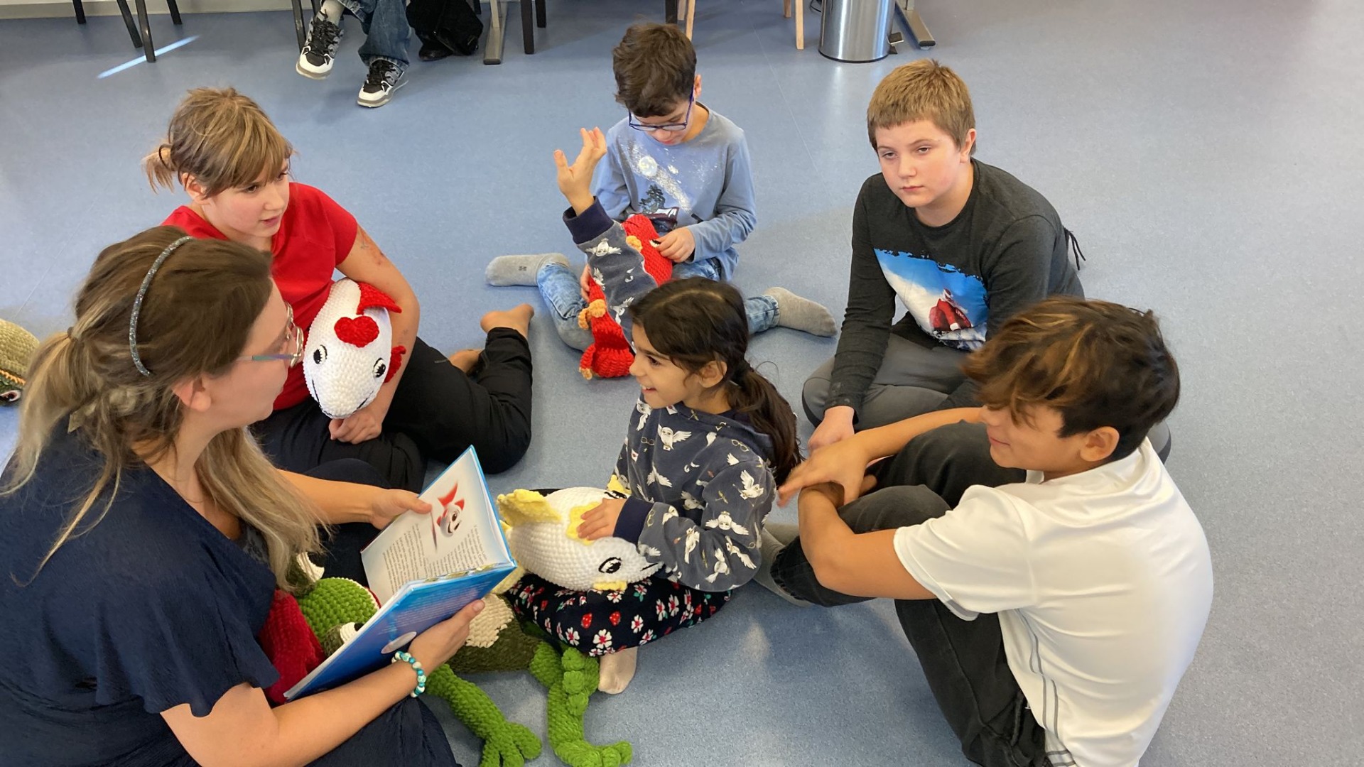 V pátek 31. října 2025 se děti z 1. stupně naší školy zúčastnily milé literární akce Ploutvičkování – autorského čtení se spisovatelkou Kateřinou Maruchničovou, autorkou knihy Podvodní svět Lolinky a Zorinky.