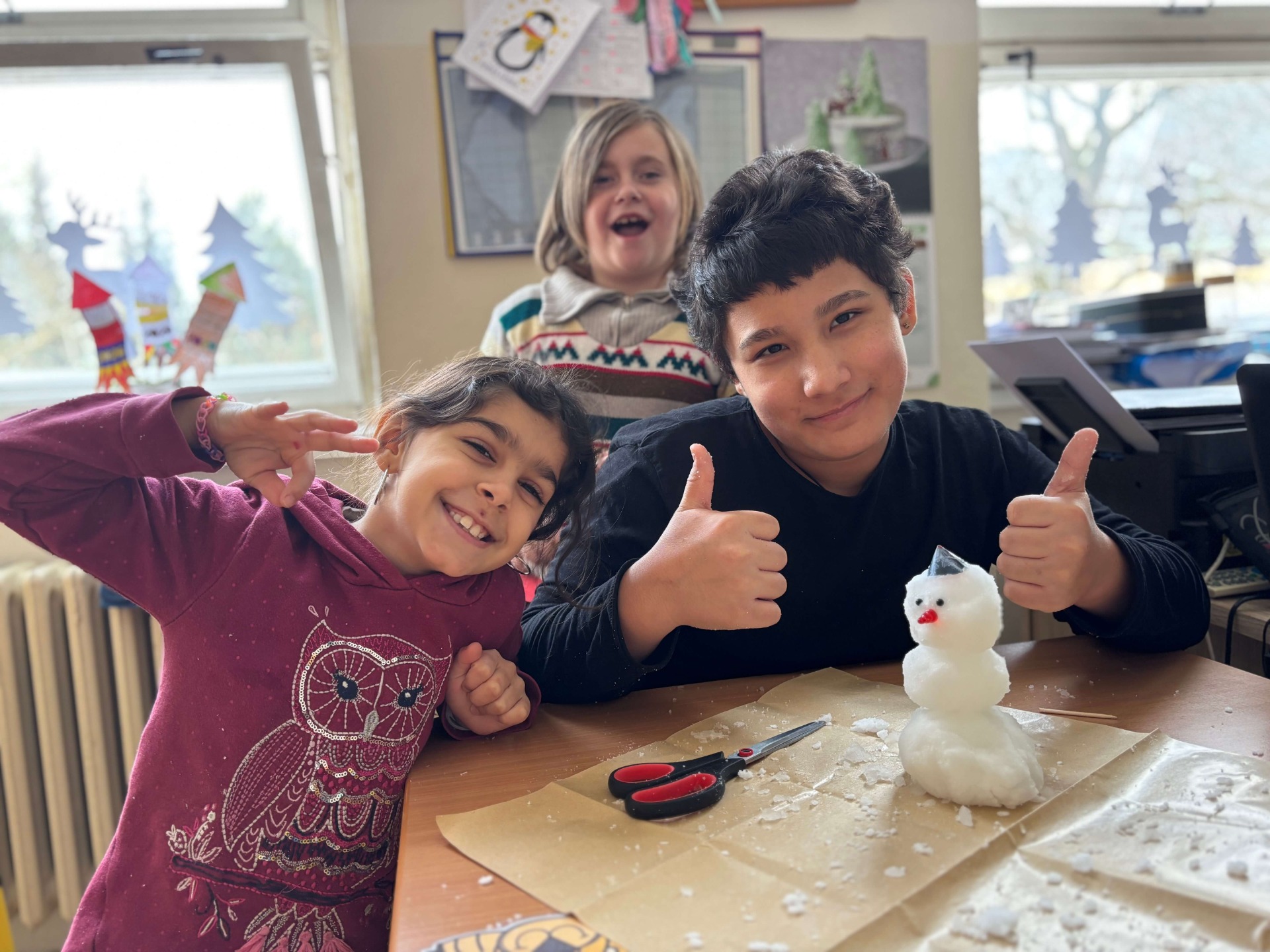 Největší nadšení ale vyvolalo zjištění, že sněhulák, kterého si děti ze sněhu vytvořily, nám ve třídě vydržel a neroztál. Děti ho mohly pozorovat i během dne a s úžasem zjišťovaly, že i sníh může mít úplně jinou podobu, než jakou znají z venku.
