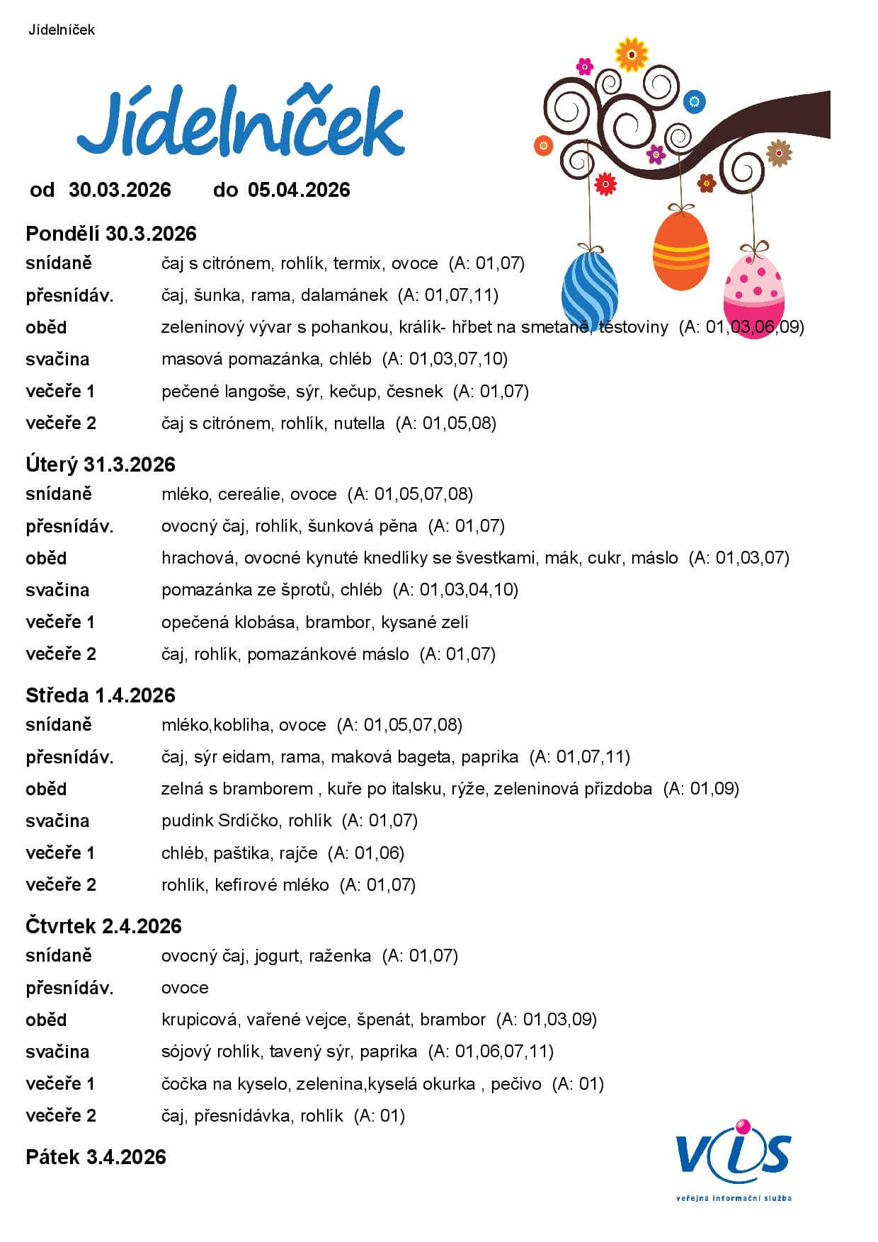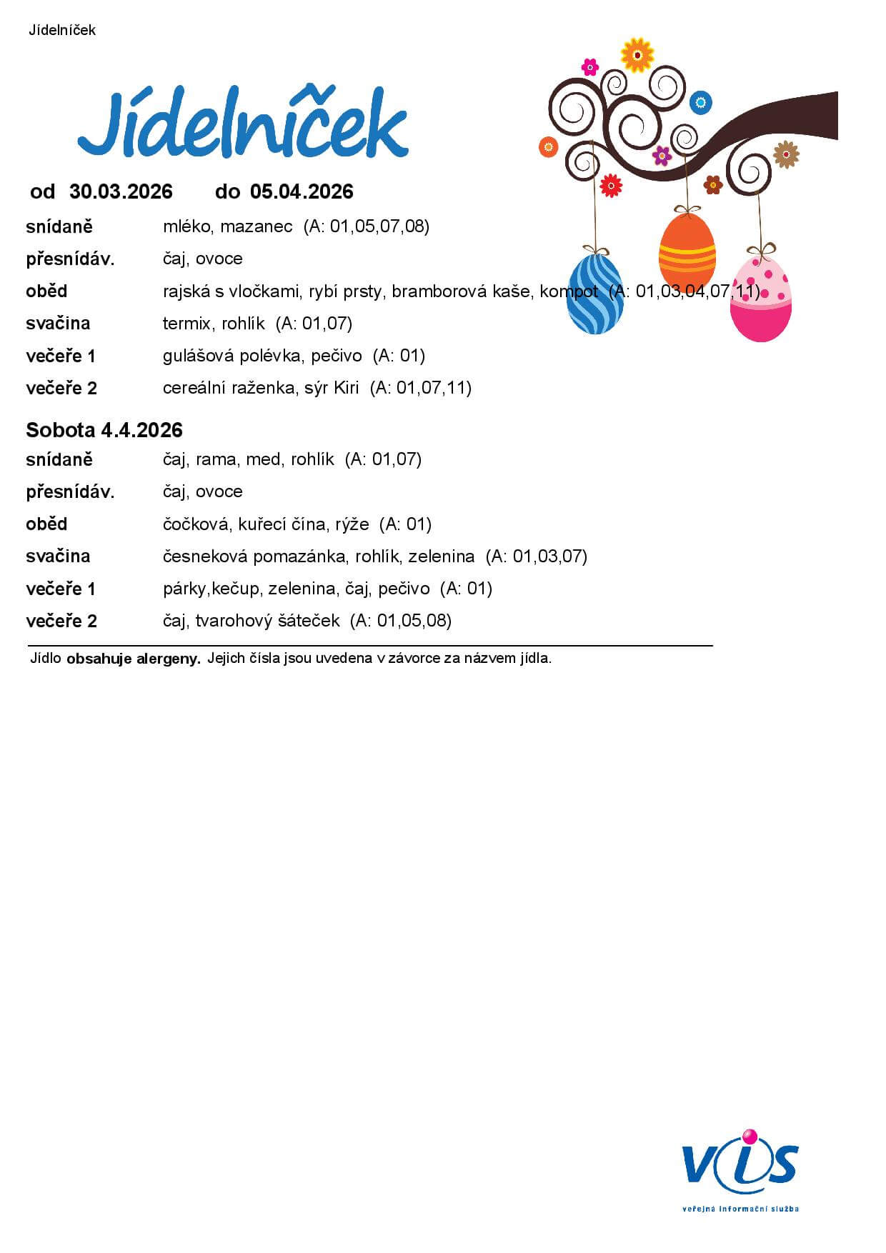 ŠJ: Aktuální jídelníček